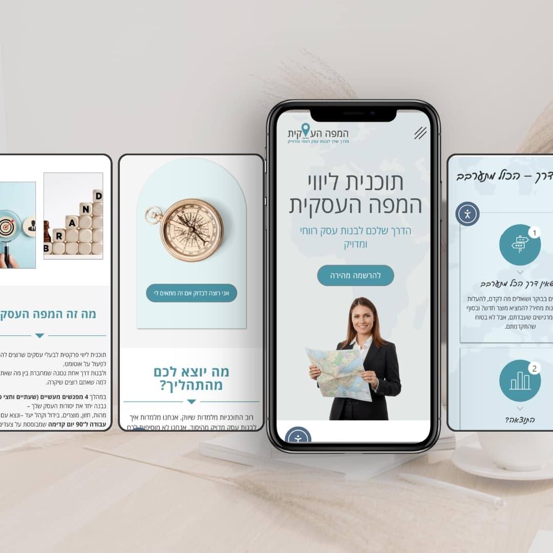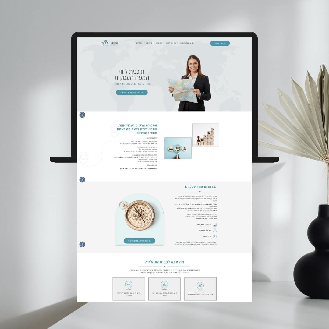 דף מכירה לתוכנית הליווי “המפה העסקית” – תוכנית שמיועדת לבעלי עסקים שרוצים לייצר כיוון ברור ולהתניע את הפעילות העסקית שלהם בצורה מסודרת.